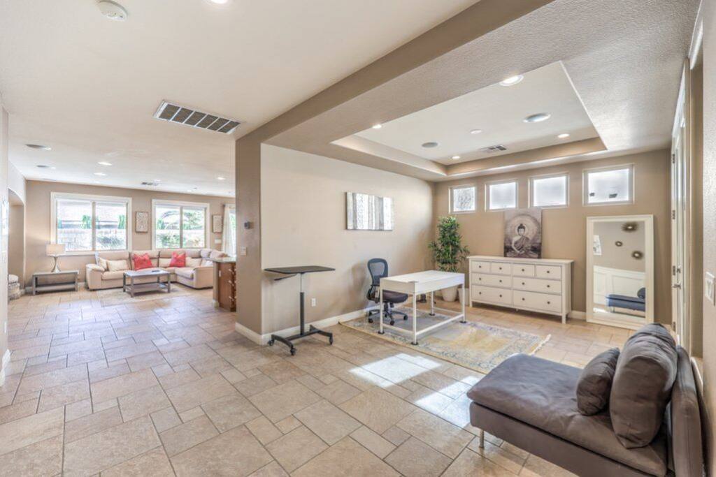 ✨ Welcome to your fully furnished mid-term rental at Copper View – designed for professionals seeking comfort, convenience, and privacy during their extended stay in Las Vegas. ✨ Available for 31+ day stays only, this spacious home combines modern design with practical amenities, making it an ideal fit for traveling nurses, executives, and remote workers. Just 15 minutes to the Las Vegas Strip and 10 minutes to the airport, you’ll be close to major employers, hospitals, and business hubs while enjoying the peace of a private residential neighborhood. ☆☆ HIGHLIGHTS ☆☆ This 2,406 sq ft home is thoughtfully furnished and fully equipped for extended stays. The modern kitchen comes with stainless steel appliances, cookware, and a breakfast bar for easy dining. A dedicated office space makes working from home seamless, while high-speed WiFi and smart TVs ensure both productivity and entertainment. Step outside to a private enclosed backyard—perfect for relaxing after long shifts or unwinding with family and friends. The home also features in-unit washer & dryer, central heating & cooling, and plenty of storage space to make your stay stress-free. ☆☆ SLEEPING ARRANGEMENTS ☆☆ 🛏 Primary Suite: King bed + ensuite bathroom with walk-in shower and double vanity 🛏 Bedroom 2: Queen bed 🛏 Bedroom 3: Queen bed 🛏 Casita (Private Guest Suite): Queen bed, full bathroom, mini fridge, microwave & coffee maker The casita provides added privacy and flexibility—perfect for colleagues, visiting family, or those who value separate living quarters. ☆☆ THINGS TO DO ☆☆ Located in a prime part of Henderson, you’ll be within 15 minutes of: 🏥 Work & Business – McCarran International Airport, Henderson Hospital, St. Rose Siena, and the Las Vegas Convention Center 🎰 Casinos & Entertainment – The Strip, Green Valley Ranch, Sunset Station 🍴 Dining & Shopping – The District at Green Valley Ranch, Town Square, Sunset Galleria Mall 🌿 Recreation – Cornerstone Park, Clark County Wetlands Park, and multiple golf courses nearby ★☆ Book your extended stay today – Copper View offers the perfect blend of work-friendly amenities, privacy, and comfort in the heart of Henderson. ☆★