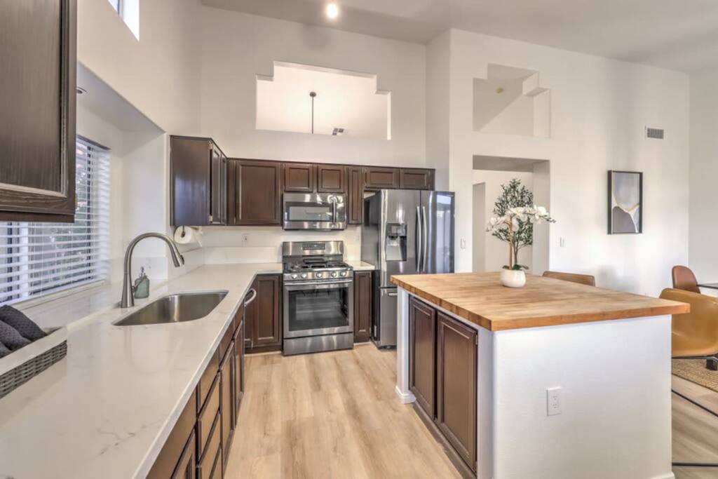 Welcome to Creek Water – your fully furnished mid-term rental designed for comfort, privacy, and convenience in Las Vegas. Available for 30+ night stays only, this beautifully maintained home combines modern style with resort-style amenities, ideal for traveling nurses, remote workers, and professionals on assignment. ☆☆ HIGHLIGHTS ☆☆ ✹ 3 bedrooms / 2 bathrooms ✹ Heated PebbleTec pool + hot tub for year-round enjoyment ✹ Fully equipped kitchen with stainless steel appliances & quartz countertops ✹ Open-concept living area with Smart TVs and high-speed WiFi ✹ Washer & dryer, 2-car garage, and private backyard oasis ✹ Quiet, calm neighborhood but close to all the action, shopping, dining & major employers ☆☆ SLEEPING ARRANGEMENTS ☆☆ 🛏 Primary Suite: King bed + ensuite bathroom with soaking tub & walk-in shower 🛏 Bedroom 2: Queen bed 🛏 Bedroom 3: Queen bed Each room is thoughtfully furnished with fresh linens, ample closet space, and designed for restful long-term living. ☆☆ LOCATION ☆☆ Conveniently located in the southwest Las Vegas valley, this home provides easy access to: - Hospitals – Southern Hills, St. Rose Siena & Spring Valley within 10–15 minutes - Harry Reid International Airport – 12 minutes - Las Vegas Strip – 15 minutes - Nearby Dining & Shopping – Minutes to groceries, cafes & restaurants - Outdoor Recreation – Red Rock Canyon and local parks nearby ❁❁❁ Mid-Term Rental Guidelines ❁❁❁ - All guests will be asked to sign a Guest Agreement after booking. - No smoking indoors. - Pets welcome upon pre-approval ($500 pet fee applies). - Stays longer than 3 months may require a formal lease agreement. - For your safety, security cameras are installed at the front door and facing the street (no cameras in private areas). - Mailbox access is only available for long-term leases with a signed agreement; short-term guests will not have mailbox privileges.