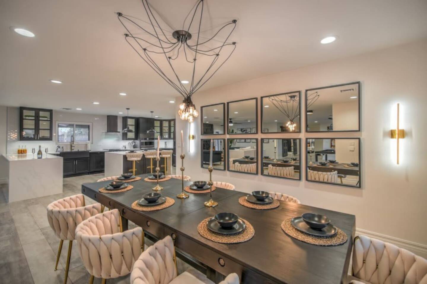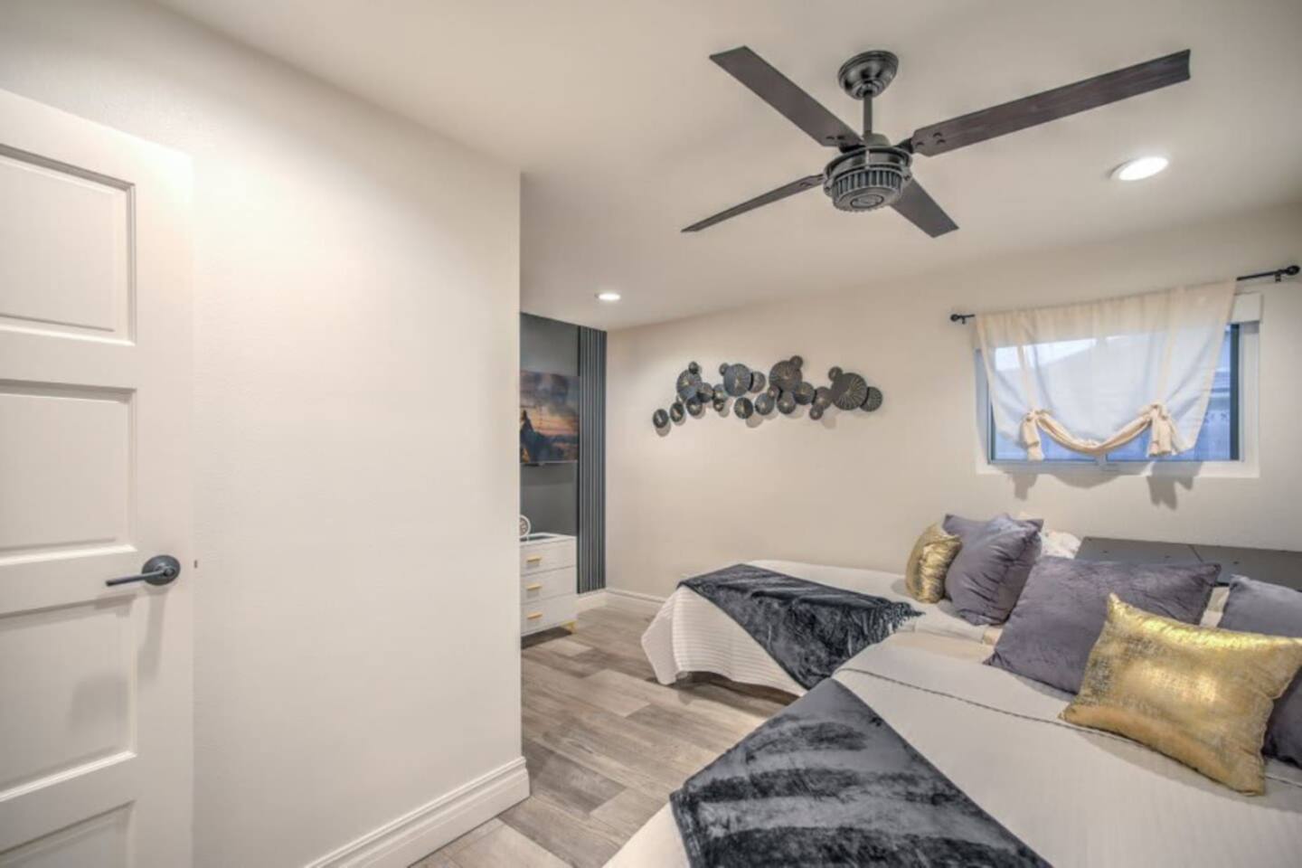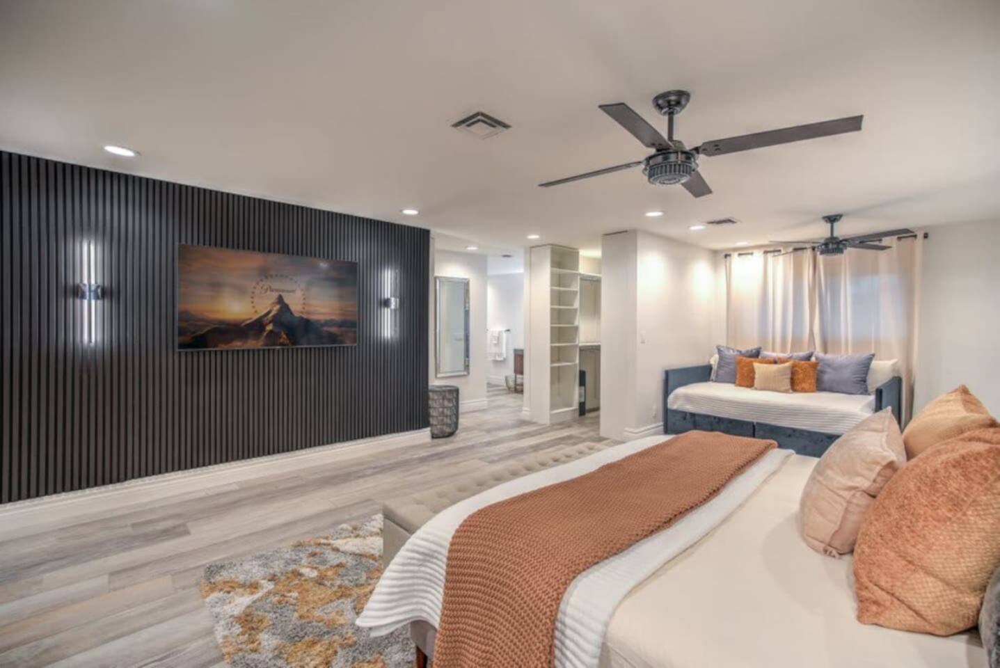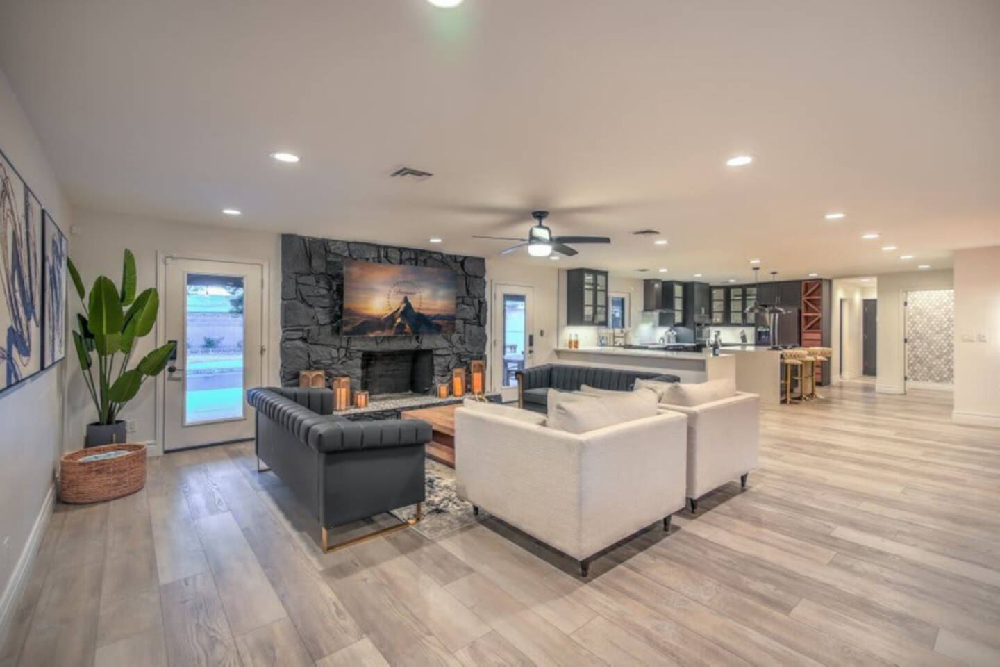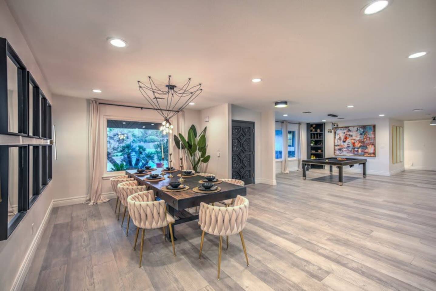 Welcome to 3322 West Mardon in Las Vegas! This short-term rental is a modern retreat boasting 4,016 sq feet of luxury living space. The interior features an open island kitchen, dining area, billiards area, and a movie theater for your entertainment needs. With 5 individual bedrooms and 4 bathrooms inside, plus an outdoor full bathroom, privacy and convenience are key. Enjoy the private sauna, modern swimming pool, year-round above ground jacuzzi/hot tub, and the brand new pool surfacing completed in July 2023. Additionally, the property offers EV charging, making it a perfect choice for eco-conscious travelers. Located less than 10 minutes from the Las Vegas Strip and Airport, this residence combines style, sophistication, and convenience for an unforgettable stay.