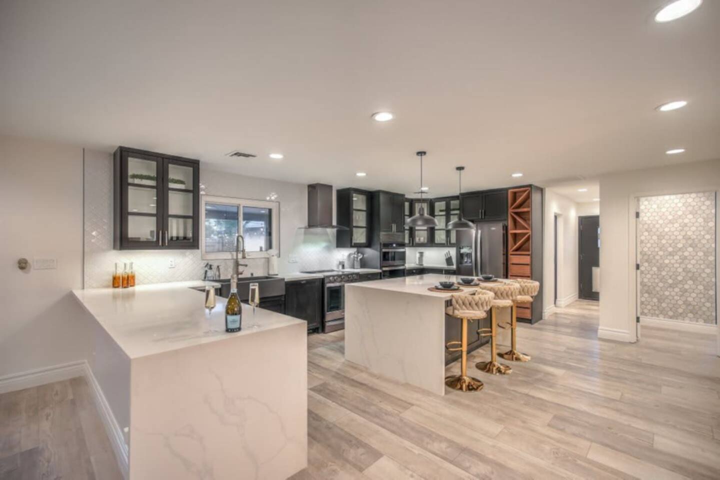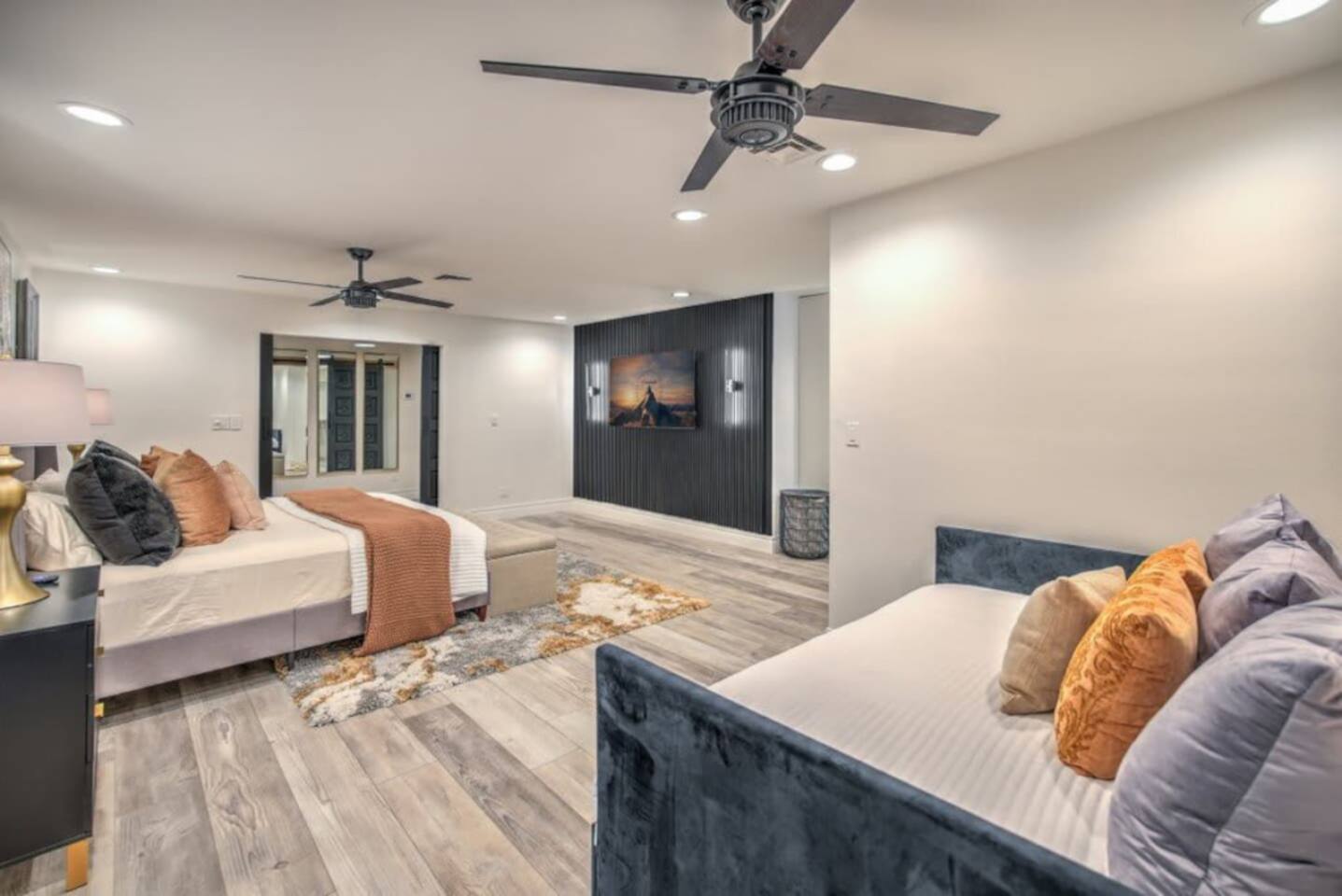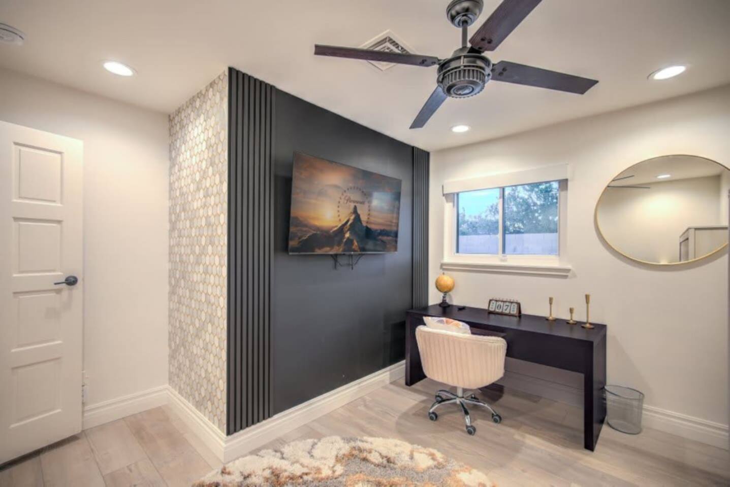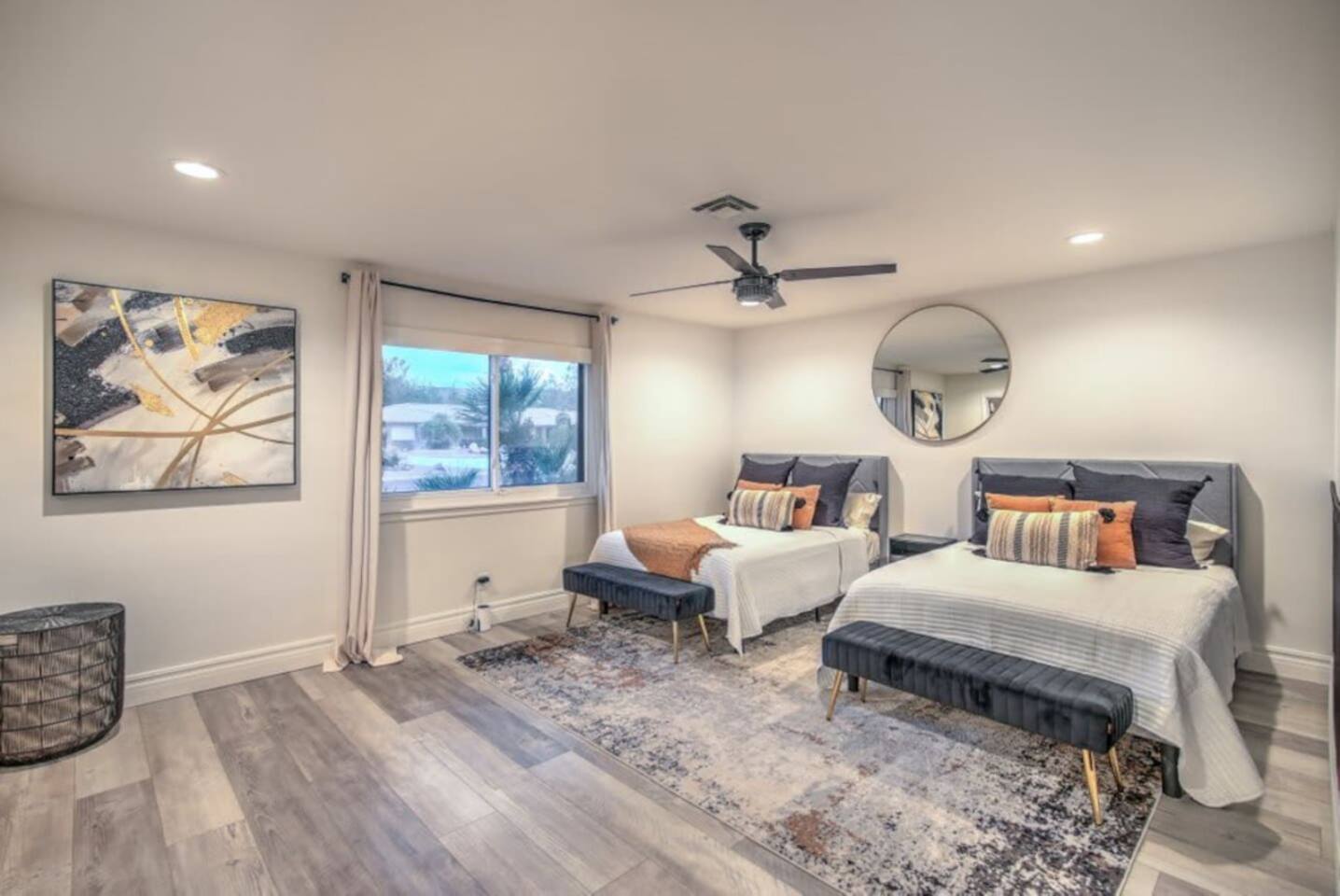 Welcome to 3322 West Mardon in Las Vegas! This short-term rental is a modern retreat boasting 4,016 sq feet of luxury living space. The interior features an open island kitchen, dining area, billiards area, and a movie theater for your entertainment needs. With 5 individual bedrooms and 4 bathrooms inside, plus an outdoor full bathroom, privacy and convenience are key. Enjoy the private sauna, modern swimming pool, year-round above ground jacuzzi/hot tub, and the brand new pool surfacing completed in July 2023. Additionally, the property offers EV charging, making it a perfect choice for eco-conscious travelers. Located less than 10 minutes from the Las Vegas Strip and Airport, this residence combines style, sophistication, and convenience for an unforgettable stay.