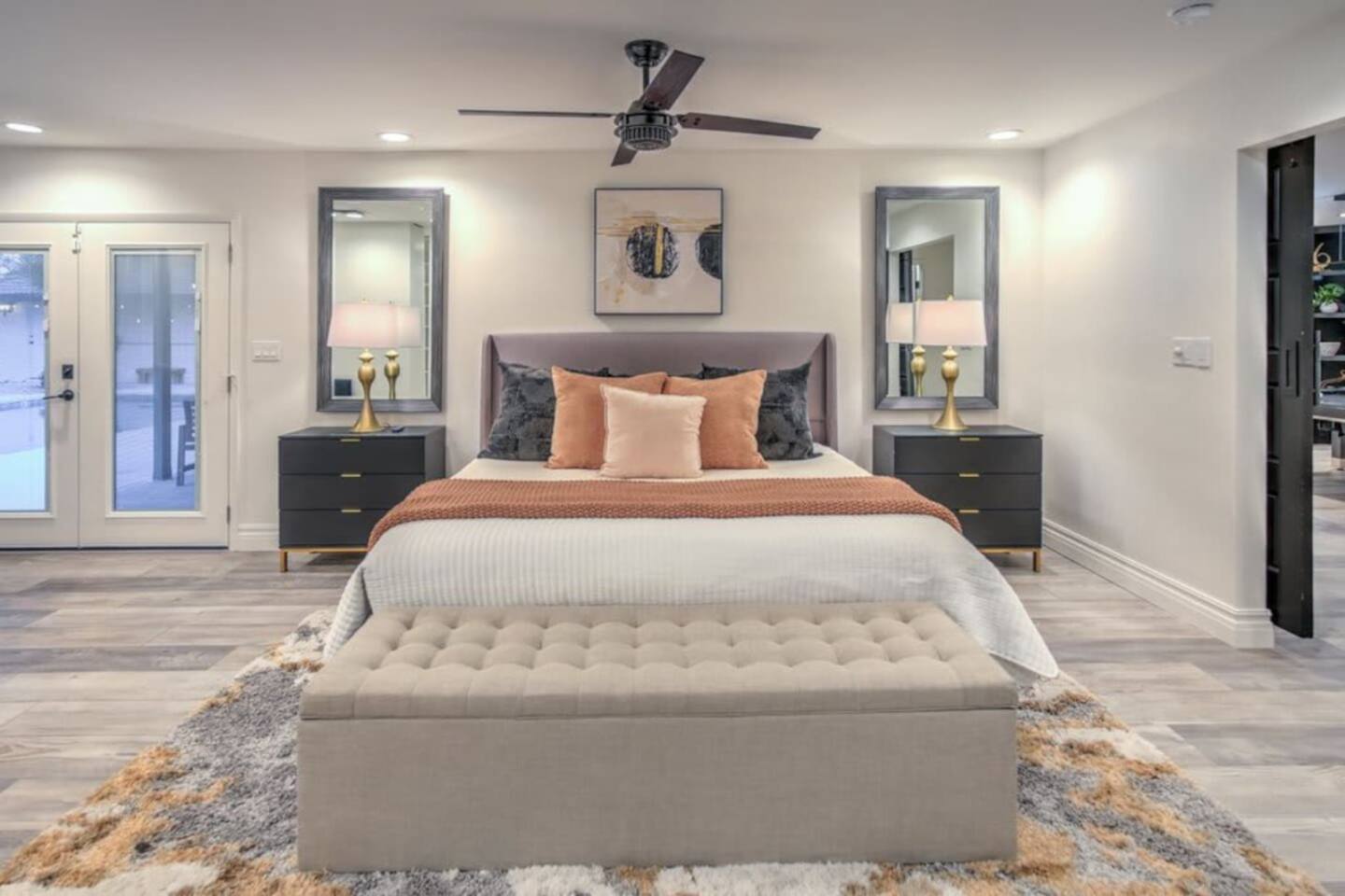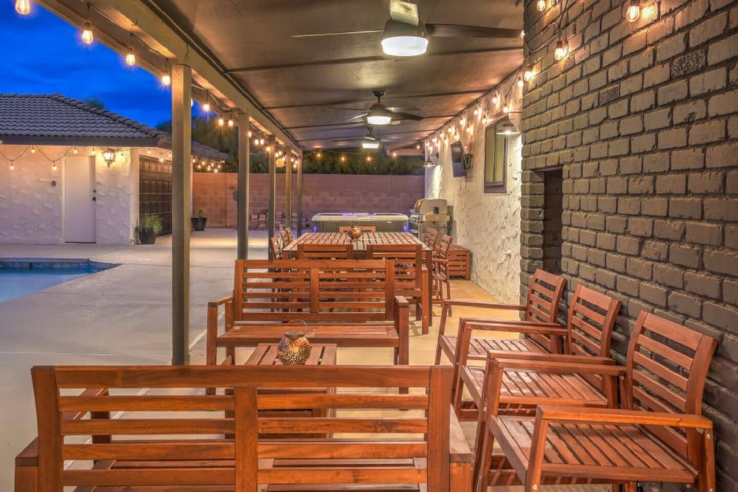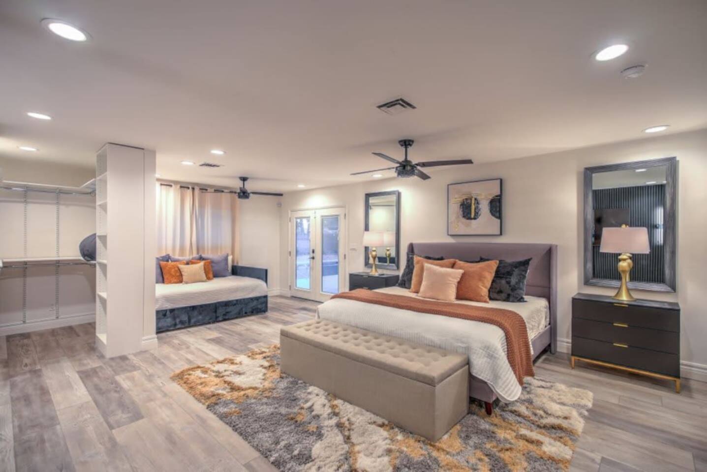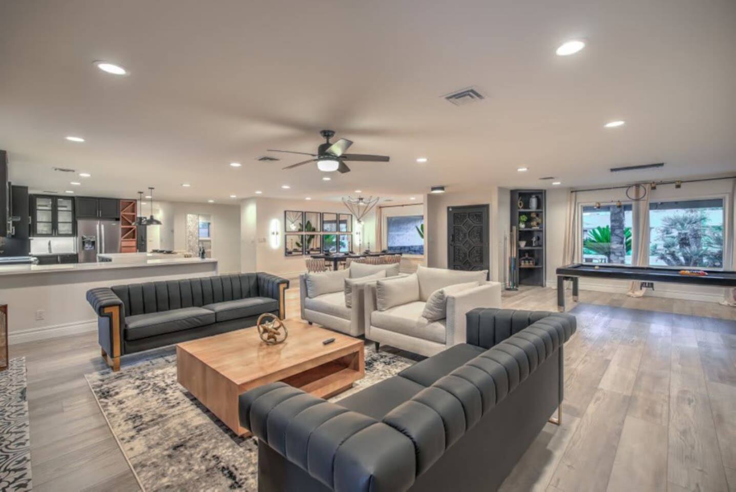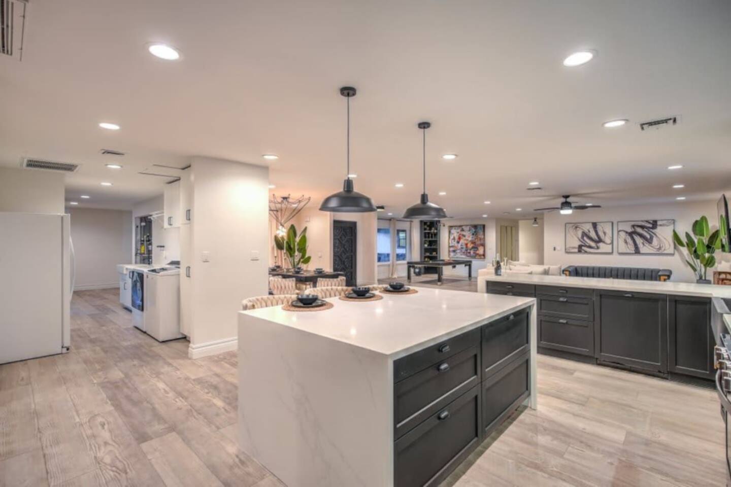 Welcome to 3322 West Mardon in Las Vegas! This short-term rental is a modern retreat boasting 4,016 sq feet of luxury living space. The interior features an open island kitchen, dining area, billiards area, and a movie theater for your entertainment needs. With 5 individual bedrooms and 4 bathrooms inside, plus an outdoor full bathroom, privacy and convenience are key. Enjoy the private sauna, modern swimming pool, year-round above ground jacuzzi/hot tub, and the brand new pool surfacing completed in July 2023. Additionally, the property offers EV charging, making it a perfect choice for eco-conscious travelers. Located less than 10 minutes from the Las Vegas Strip and Airport, this residence combines style, sophistication, and convenience for an unforgettable stay.