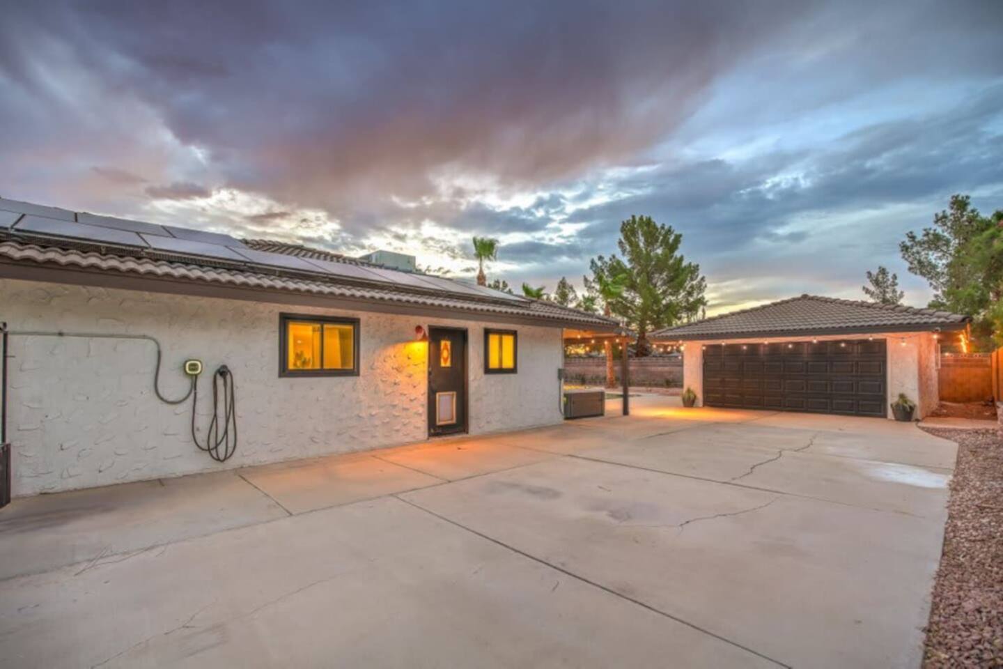 ☞ 4,016 sq feet | 373.1 sq meters ☞ Single story / one level ☞ 5 individual bedrooms ☞ 4 bathrooms inside, 1 outdoor full bathroom ☞ Private sauna ☞ Private modern swimming pool ☞ Year-around above ground jacuzzi/hot tub ☞ Less than 10 minutes to the Las Vegas Strip and Airport ☞ EV Charging Welcome to our gorgeous modern retreat just minutes from the action in Las Vegas. Situated on a half-acre lot, this stunning residence offers unparalleled style and sophistication.