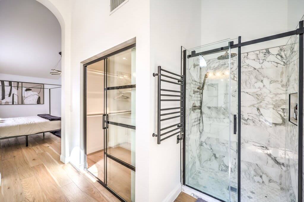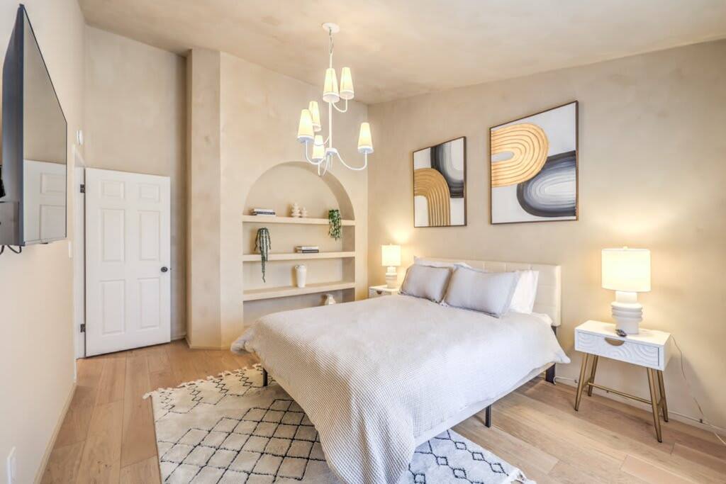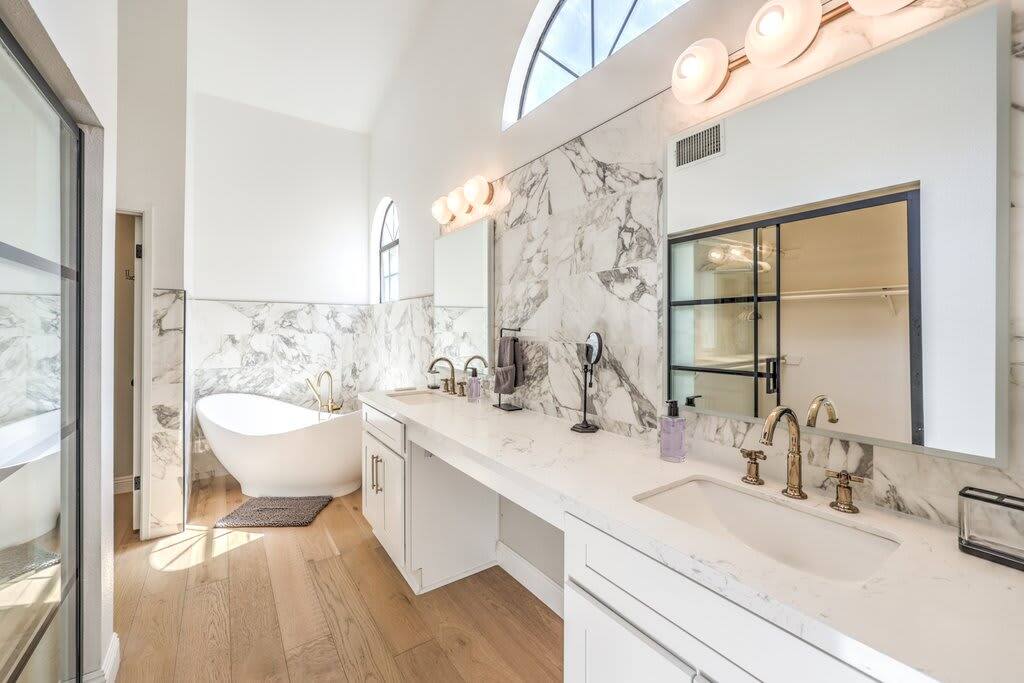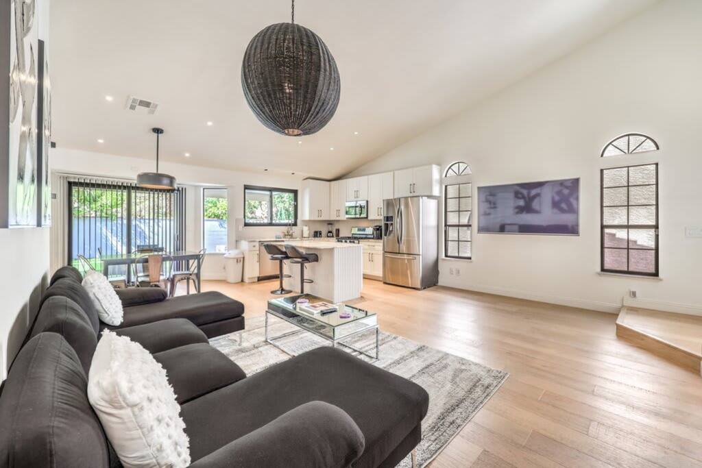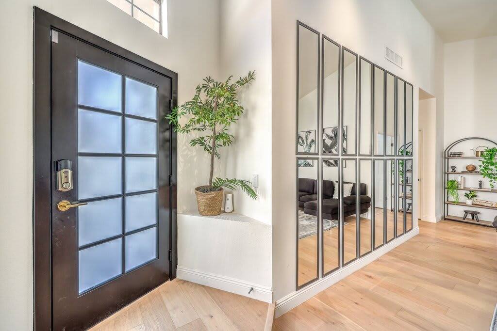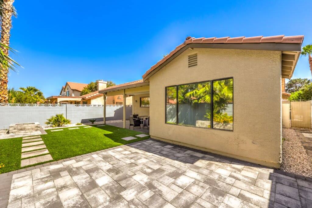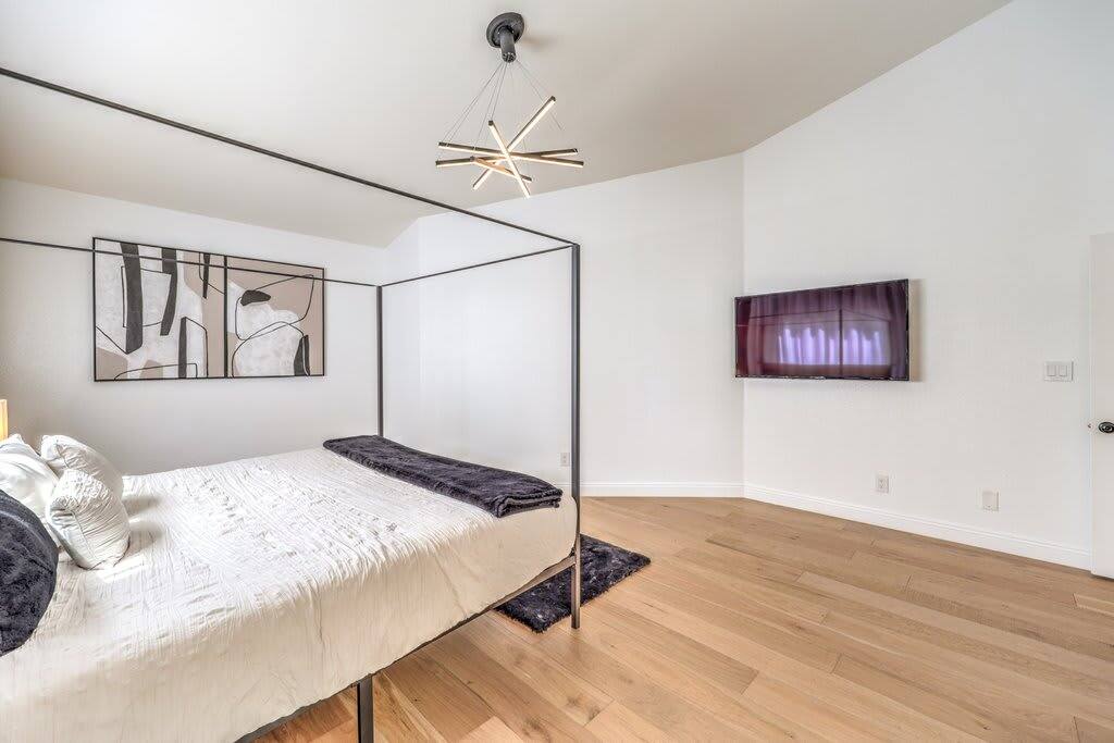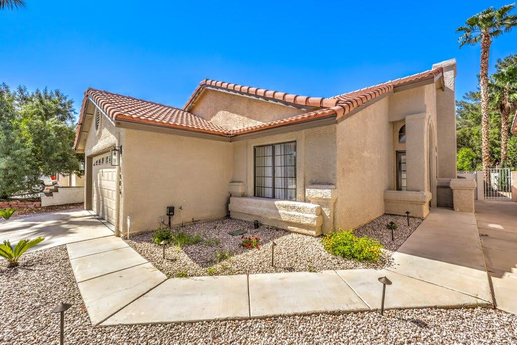 Discover modern sophistication and unmatched convenience at this premier location, nestled just 15 minutes from the vibrant Las Vegas Strip and a swift 8-minute journey from the airport. Located in the serene Green Valley, this single-level residence captivates with its elegant, wide plank hardwood floors that grace every room. The heart of the home is an expansive great room, featuring a state-of-the-art gourmet kitchen equipped with an island and topped with stunning Calacatta marble countertops. The master suite is a sanctuary of luxury, boasting a bespoke walk-in shower, a freestanding bathtub, and a walk-in closet that epitomizes magazine-worthy design. Enjoy the ease of high-speed Wi-Fi, a smart TV, and a smart thermostat for ultimate comfort. The inclusion of a full kitchen, dishwasher, and laundry facilities ensures every aspect of your stay is catered to, whether you're seeking a brief retreat or a more extended visit.