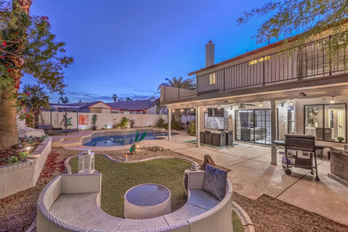 ☞ 2,295 square feet | 213.21 sq meters ☞ 3 private bedrooms ☞ 2.5 bathrooms ☞ 4 Individual Beds ☞ Only 10 minutes to the Strip/Airport ☞ 2 car private garage ☞ RV parking! ☞ Sparkling, modern PebbleTec pool and spa.