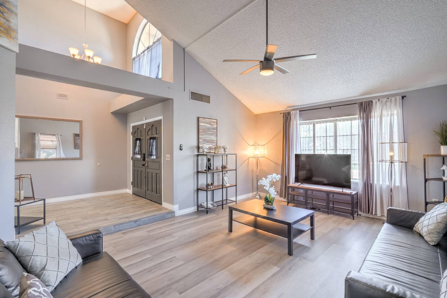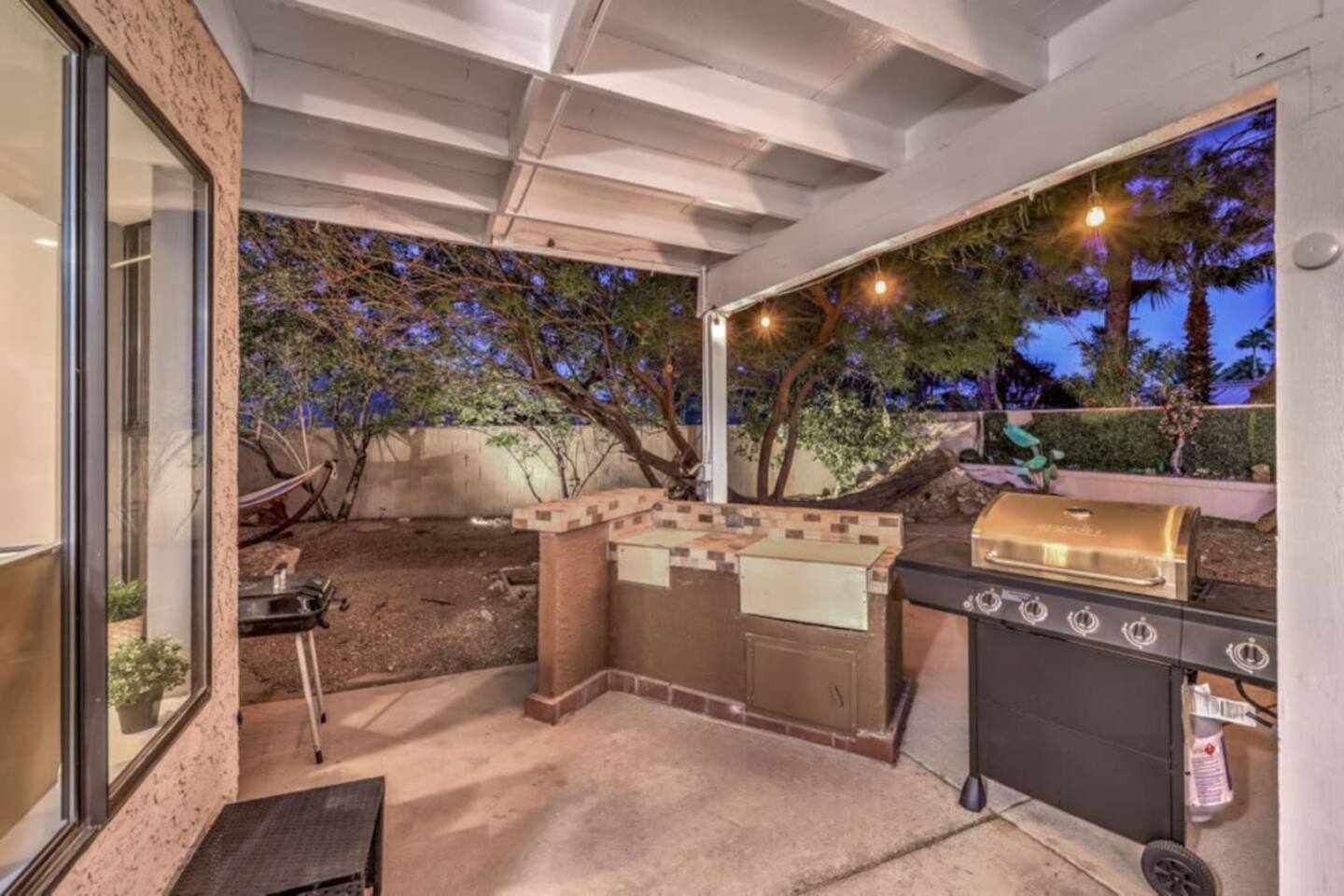 Welcome to your luxurious private retreat in the heart of Las Vegas, where you can enjoy a peaceful and relaxing stay while still being just minutes away from the excitement and entertainment that the city is known for. Our stunning modern home, available for stays of 30 days or more, has been compl As you step inside this beautifully designed home, you'll be greeted by an open-concept living area with stylish furnishings, contemporary décor, and abundant natural light. The spacious living room features comfortable seating, perfect for unwinding after a day of exploring the city, and a large flat-screen TV for your entertainment needs. The fully equipped gourmet kitchen boasts state-of-the-art appliances, sleek countertops, and all the essentials you need to prepare delicious meals during your stay. Enjoy your culinary creations at the elegant dining table, which comfortably seats up to six guests. Our home offers three generously sized bedrooms, each featuring plush beds and high-quality linens to ensure a restful night's sleep. The primary bedroom includes a private en-suite bathroom with a walk-in shower and a soaking tub for ultimate relaxation. Outside, you'll find your own personal oasis with a sparkling PebbleTec pool and spa, surrounded by lush landscaping and ample lounge seating. This outdoor space is perfect for soaking up the sun, taking a refreshing dip, or enjoying a leisurely swim under the stars. In addition to the luxurious amenities within the home, you'll also have access to a two-car garage and dedicated RV parking, providing ample space for your vehicles during your stay. Our home's prime location means you're only a short drive away from Las Vegas' top attractions, including the famous Strip, Allegiant Stadium, and Reid International Airport. Whether you're visiting Las Vegas for business, pleasure, or an extended stay, our modern and sophisticated home offers the perfect blend of comfort, convenience, and luxury. Book your stay today and experience the best that the entertainment capital of the world has to offer, all while enjoying the peace and tranquility of your own private retreat!